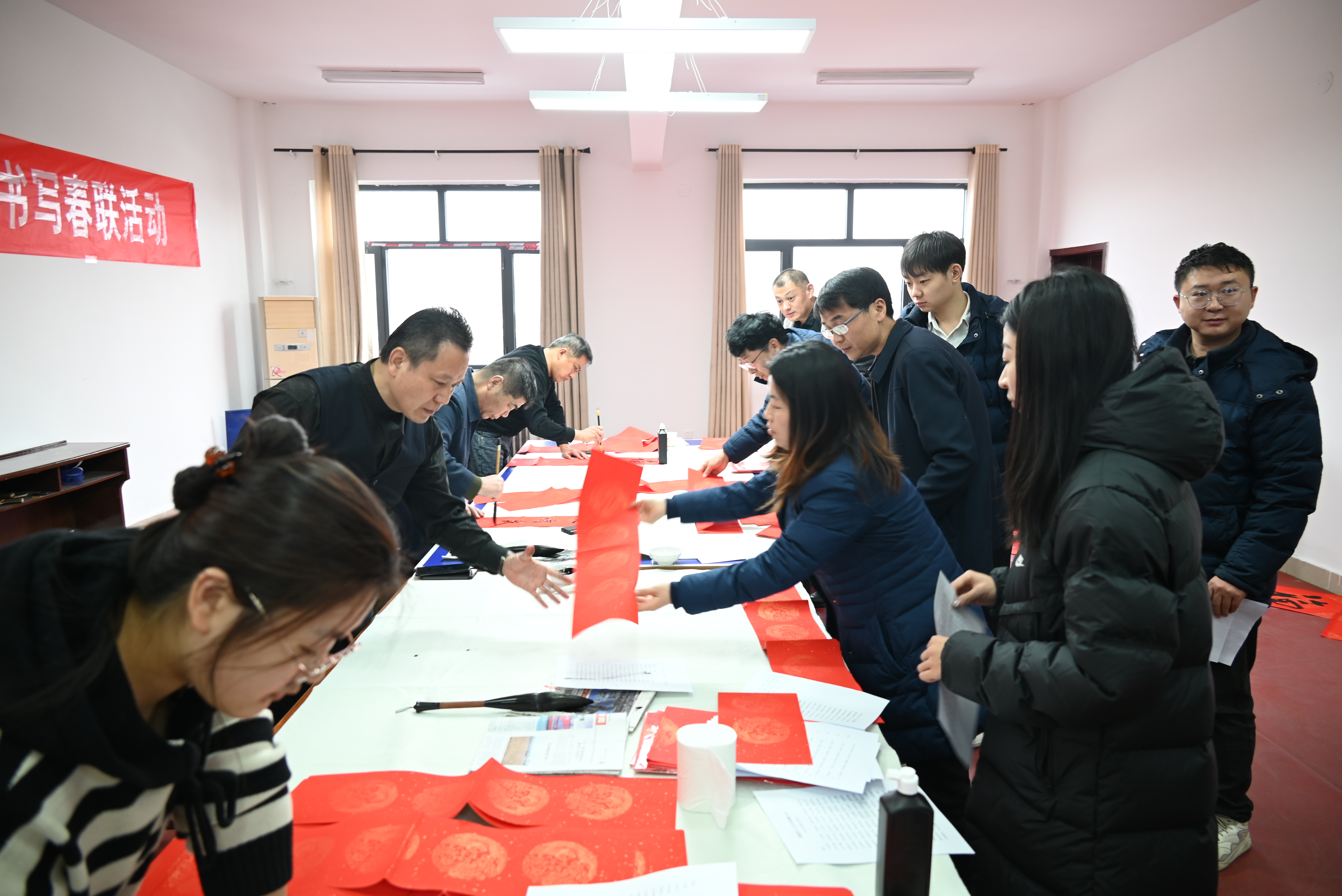 義寫春聯(lián)活動(dòng)在公司已連續(xù)舉辦四年,已然成為一項(xiàng)備受期待的文化傳統(tǒng)。這些小小的春聯(lián),不僅承載著辭舊迎新的美好祝愿,更寄托著對未來的無限憧憬。此次活動(dòng)共送出300余幅春聯(lián),它們不僅是一份份節(jié)日禮物,更是清廉文化的傳播載體?;顒?dòng)的開展,極大地充實(shí)了職工的精神文化生活,營造出歡樂祥和的節(jié)日氛圍,進(jìn)一步增強(qiáng)了全體干部職工的幸福感、歸屬感與認(rèn)同感,讓大家在墨香與祝福中,真切感受到公司的關(guān)懷與溫暖,滿懷正能量地開啟新的一年。