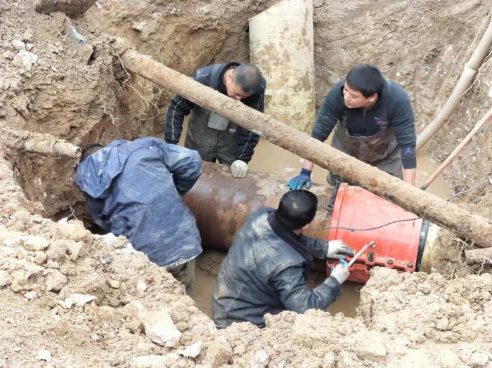 搶修人員趕到現(xiàn)場后,隨即進行勘查,確定了漏水管道位置后,立即制定搶修方案。受爆管影響,容金國際小區(qū)、文化展覽館、胡村社區(qū)、頤和明珠等小區(qū)供水壓力將有明顯波動。在工程機械挖開道路后,根據(jù)現(xiàn)場管道的破損情況,決定采取斷管更換新管的方式進行搶修來恢復(fù)破損的管線。為加快搶修進度,盡早恢復(fù)供水,搶修人員不畏艱難,面對各種不利影響,迎著刺骨的寒風(fēng)通宵達旦施工作業(yè)。21日上午10點30分,經(jīng)過12個小時的連夜奮戰(zhàn),順利完成了供水管道搶修工作,全面恢復(fù)了施工影響區(qū)域供水。在管道搶修過程中,隊員們都沒有顧得上吃上一口熱飯,餓了啃面包,渴了喝礦泉水,一刻也不停歇?!坝肋h在路上”這幾個字是對供水人工作的完美詮釋,不怕臟、不怕苦、不怕累是對他們工作態(tài)度的真實寫照。