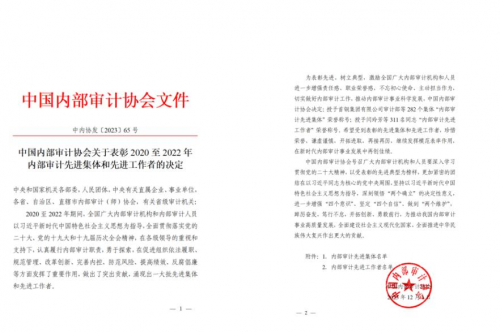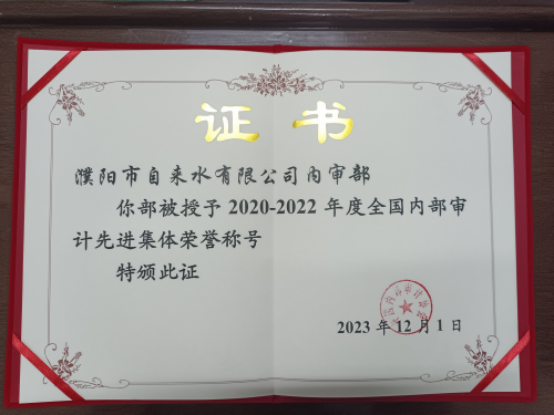 2023年12月5日,2020至2022年全國內(nèi)部審計先進集體和先進工作者(以下簡稱雙先)表彰大會在北京召開,濮陽市自來水有限公司內(nèi)審部榮獲“2020至2022年全國內(nèi)部審計先進集體”稱號。據(jù)悉,全國內(nèi)部審計先進集體和先進工作者表彰是列入《全國評比達標表彰保留項目目錄》的一項全國性表彰工作,是全國內(nèi)部審計領(lǐng)域的最高榮譽。